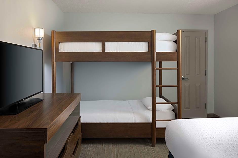 This room features a flat-screen TV with cable channels. A refrigerator, coffee maker, and microwave are provided as well.